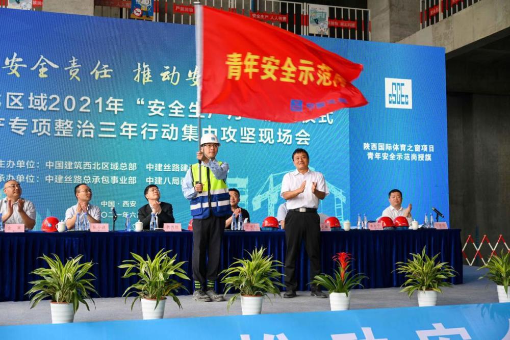 6月3日,中国建筑西北区域2021年“安全生产月”启动仪式暨安全生产专项整治三年行动集中攻坚现场会在中国建筑陕西国际体育之窗举行。
